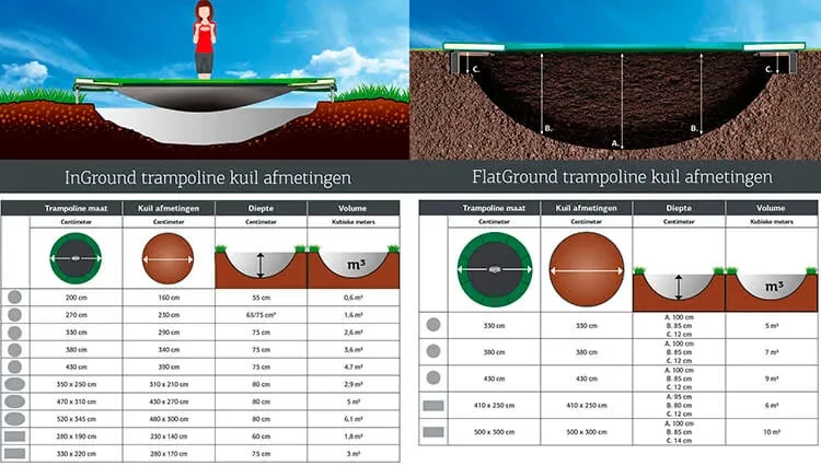 Dit is niet het geval bij een gewone trampoline. Daarom raden wij het af om een gewone trampoline in te graven.
